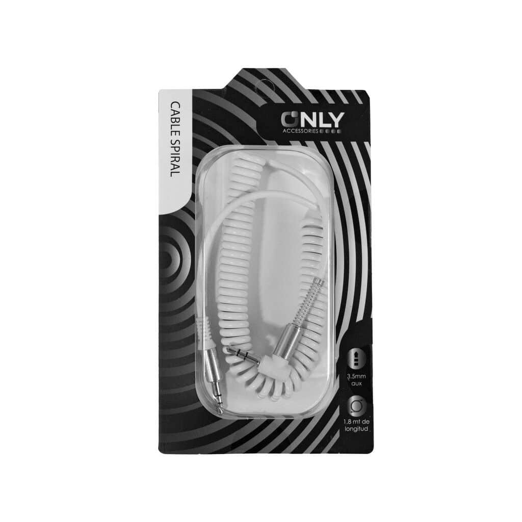 Cable AUX 3.5 MOD69 Espiral. Su diseño en espiral permite una mayor flexibilidad y resistencia, evitando enredos y alargando su vida útil.