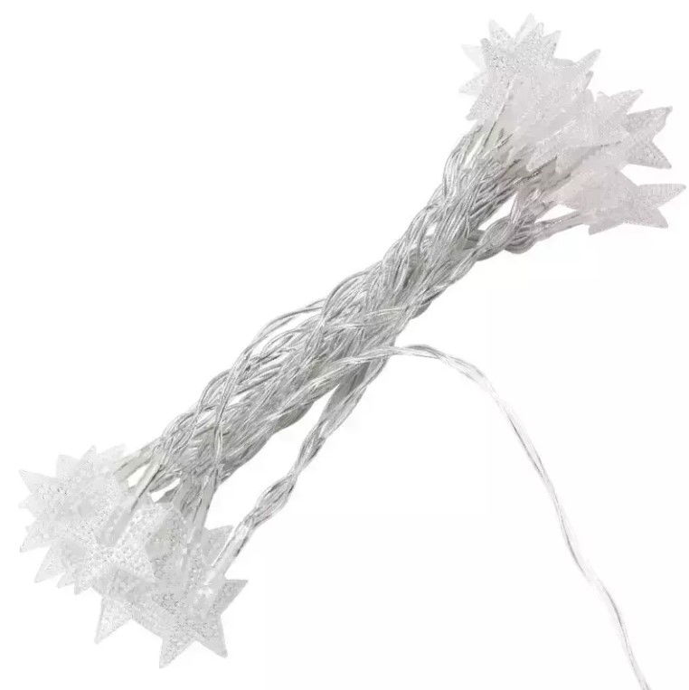 Guirnalda Navideña con figuras de estrella, en colores o luz calida coneccion por USB, luces fijas tipo Led. Material, Polivinilo