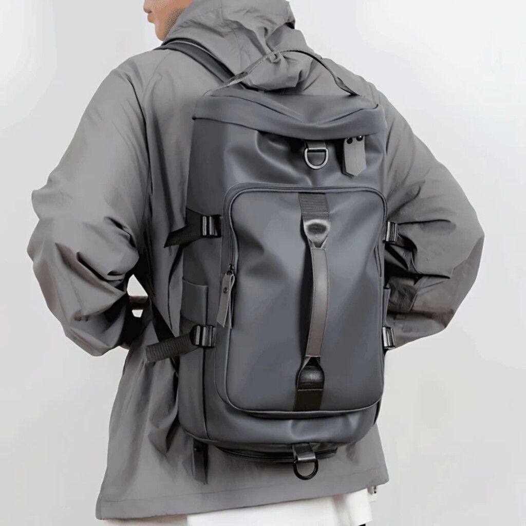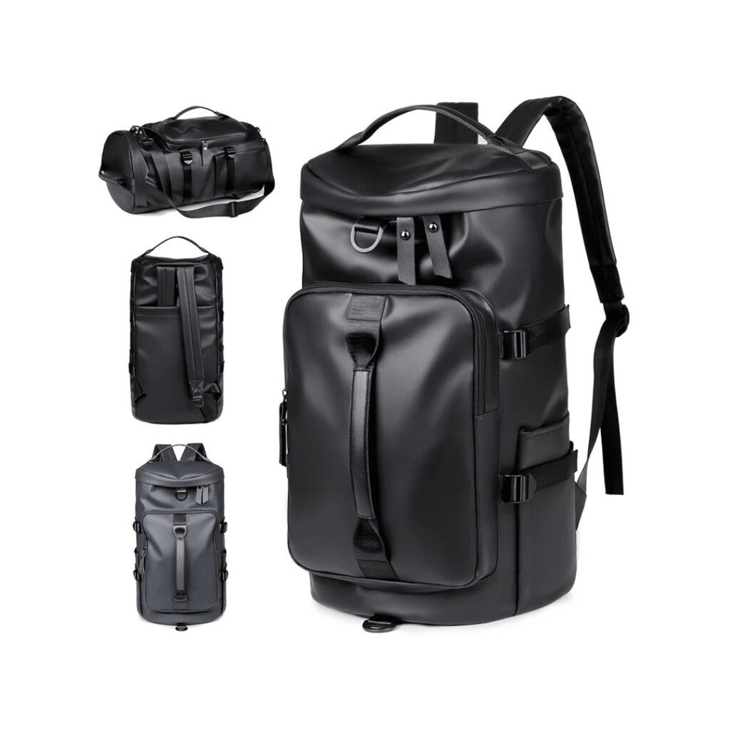 Medidas: 46 cm. ancho, 26 cm. alto, 24 cm. profundidad Color: negro Material: PU, impermeable Funciones: bolso y mochila