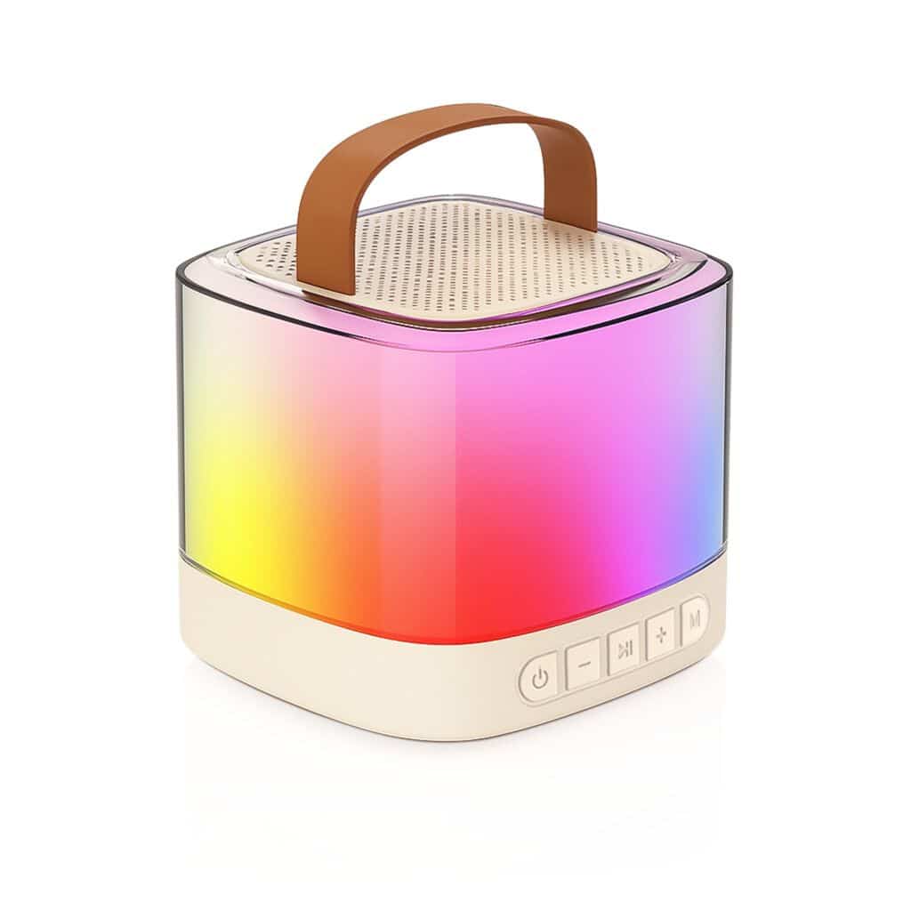 Un parlante Bluetooth pequeño, liviano y funcional. Con 3W de potencia, reproducción desde USB, TF, FM o TWS, y efectos LED que lo hacen destacar. Batería de 400mAh, carga por puerto Tipo C y hasta 3 horas de uso continuo. Incluye cable de carga.