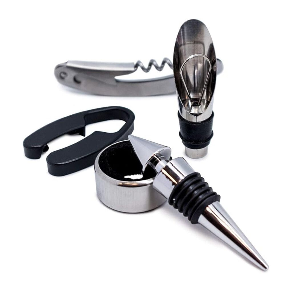 Set Descorchador para Vinos 5 piezasEstuche en forma de Botella de VinoIncluye Descorchador, Tapon, Aro, Vertedor, Cortador