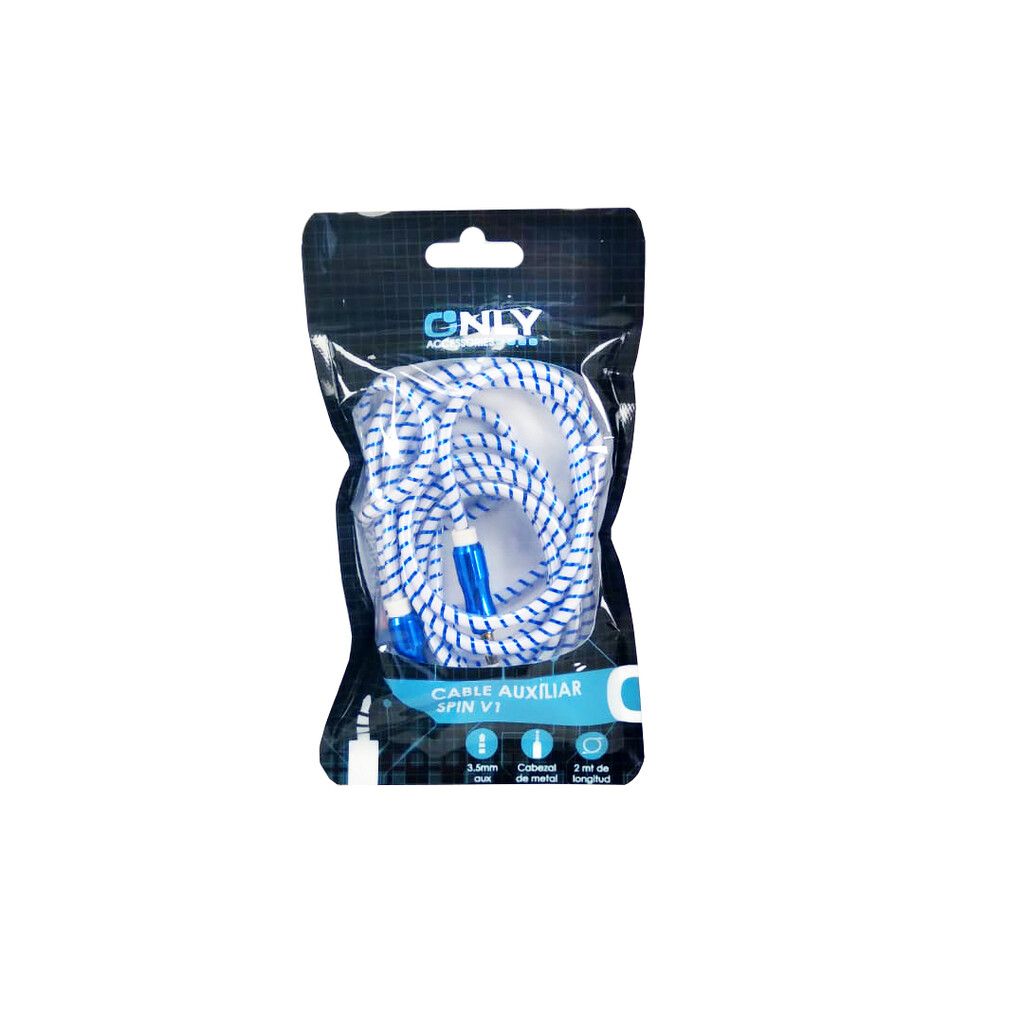 Cable AUX 3.5 MOD75. Su diseño flexible y reforzado, junto con su recubrimiento de tela, lo hace resistente al uso diario y evita enredos.