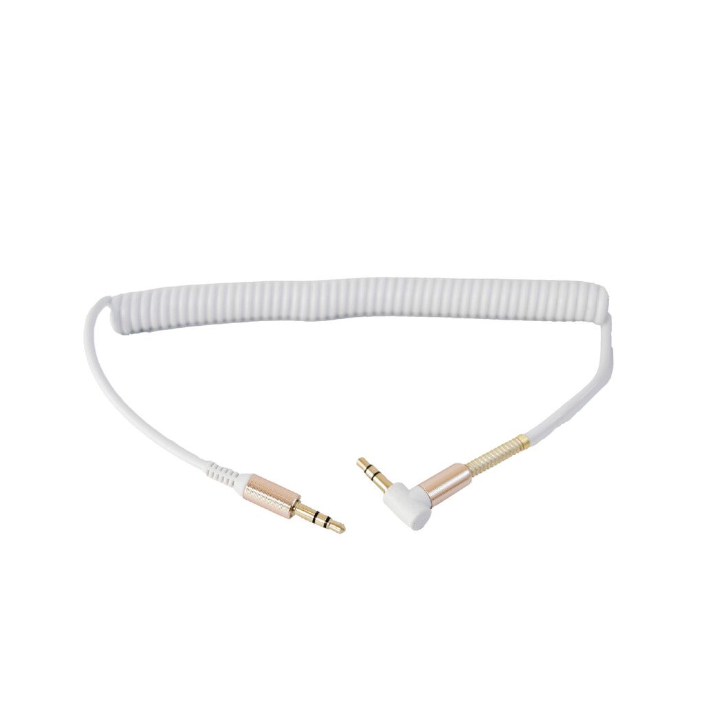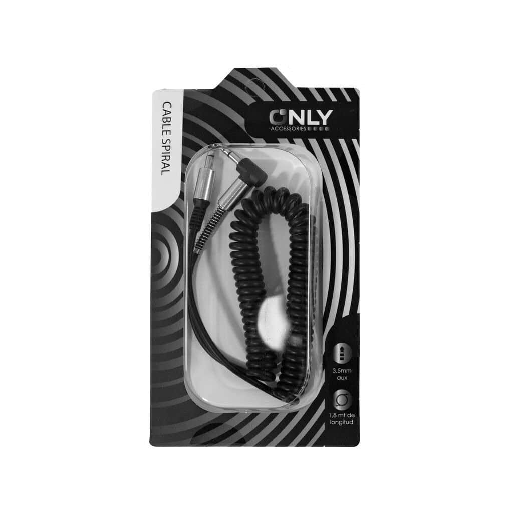 Cable AUX 3.5 MOD69 Espiral. Su diseño en espiral permite una mayor flexibilidad y resistencia, evitando enredos y alargando su vida útil.