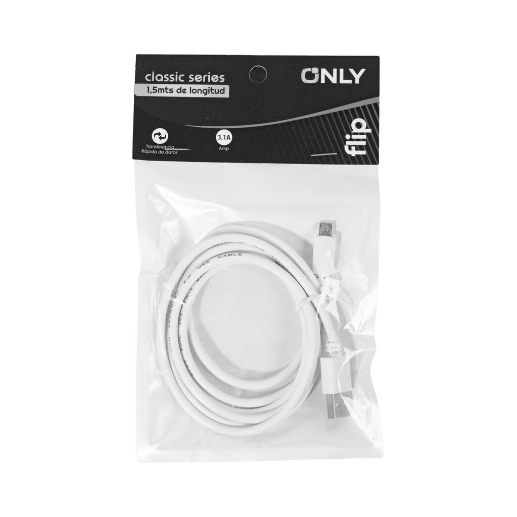 Cable USB MOD 71 FLIP. Diseñado para soportar una carga rápida de 3.1A, este cable garantiza una transferencia de energía estable y segura. Su construcción con 80 hilos de cobre y un grosor de 4.2mm lo hace más resistente al desgaste y a la torsión.