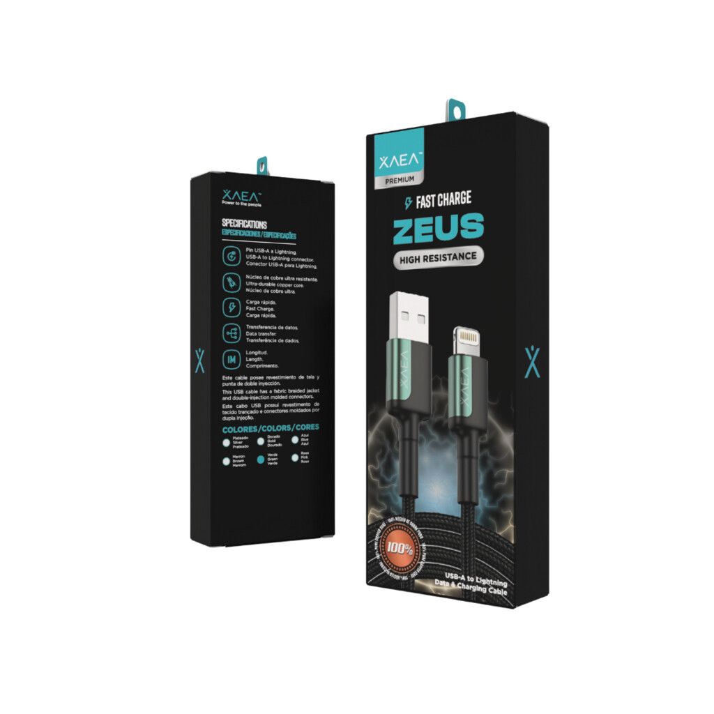 Con 1 metro de largo y un diseño moderno en colores dorado, plata, marrón y verde, el ZEUS Lightning es la combinación perfecta de tecnología y estilo para usuarios Apple que no se conforman con menos.