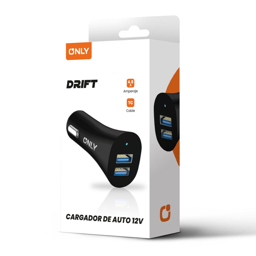 Mantén tus dispositivos siempre listos con el Cargador de Auto DRIFT 12V. Con su doble puerto USB y cable Tipo C incluido, podrás cargar múltiples dispositivos de manera rápida y eficiente.
