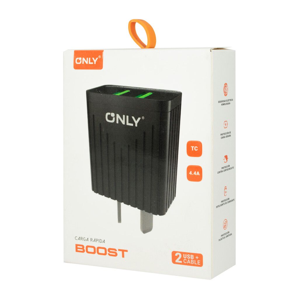 CARGADOR 220V MODO-008 BOOST – 4,4A – 2 USB + CABLE TIPO C – ONLY
