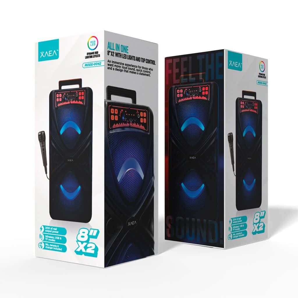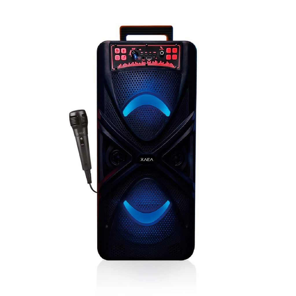 Disfrutá de un audio claro y envolvente gracias a sus dos parlantes de 8» con potencia total de 20W. Ideal para reuniones, karaoke o eventos, incorpora entrada para micrófono de 6,5 mm, USB, TF y AUX. Incluye micrófono con cable, control remoto y cable de carga. Con batería de 3000mAh, te garantiza horas de diversión sin interrupciones.