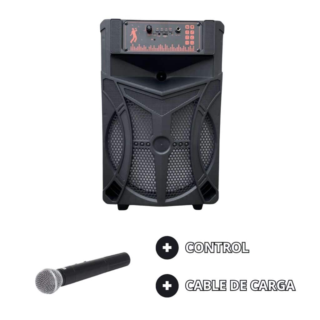 Incluye micrófono inalámbrico, control y cable de carga. Ideal para música, karaoke o eventos.
