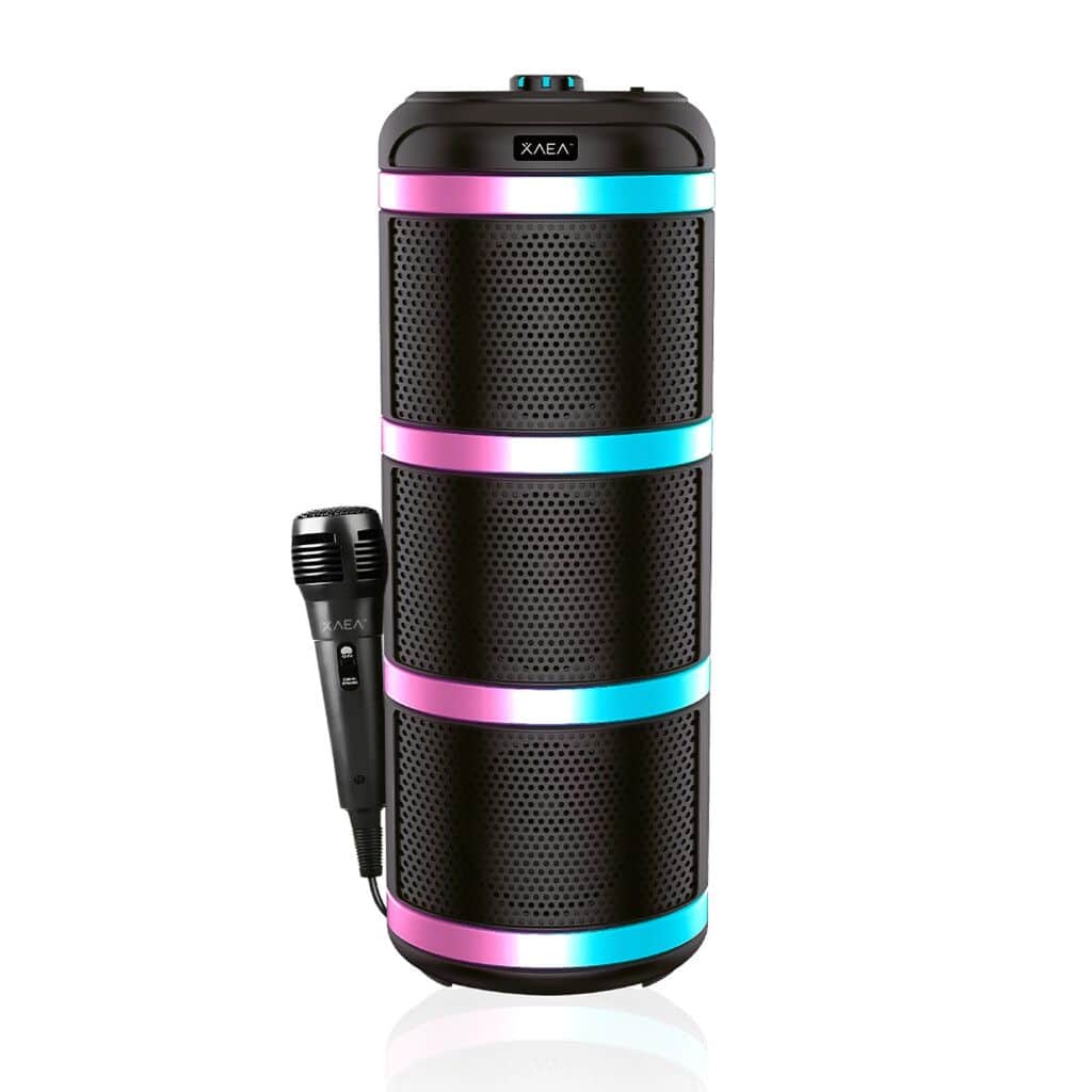 Incluye cable de carga y micrófono con cable para karaoke o presentaciones.