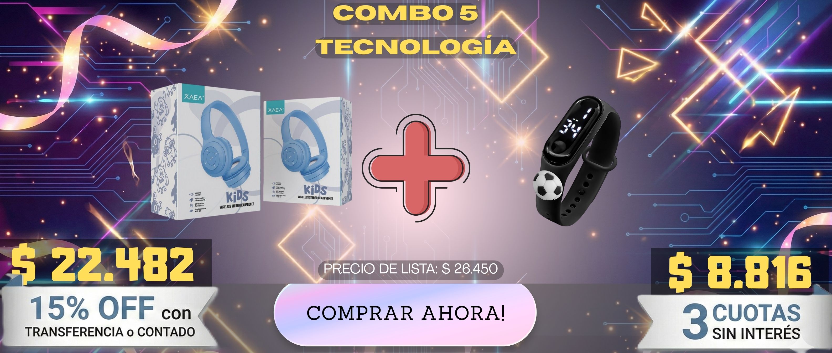 Incluye cable de carga y auxiliar. Una excelente alternativa para ofrecer a quienes buscan un auricular pensado especialmente para niños.